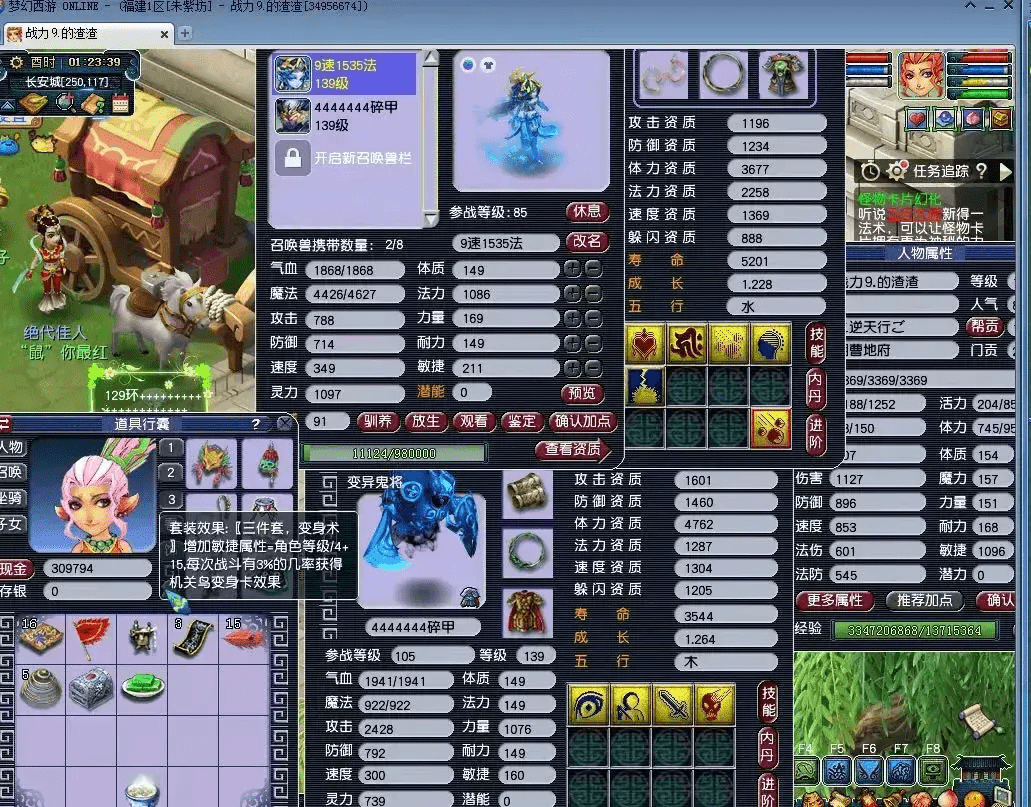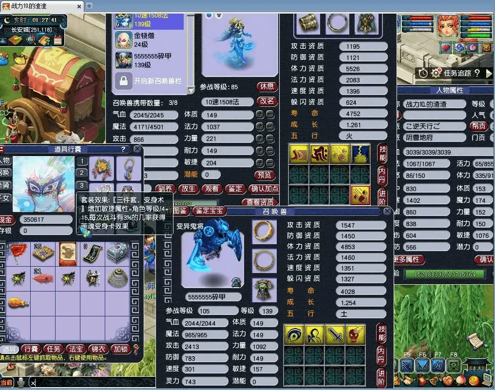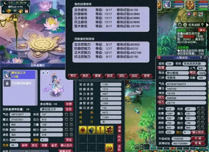 到这里,其实一组号的配置和属性已经出来了。人物攻/法修15级以上,双抗9级,宝宝双修7-9级,凌波城面板3500血1500伤害750防御,固伤4000血800防,封妖副秒1250无符,全力1900伤害240速,须弥1200法伤260速。达到这个标准,你基本可以做到大小鬼15对每小时,铃铛80环左右,普通副本切一个奶心法基本挂机过,大闹boss和通天需要手操点杀,秘境需要跳关,操作好的话可以压时间过不跳关。
