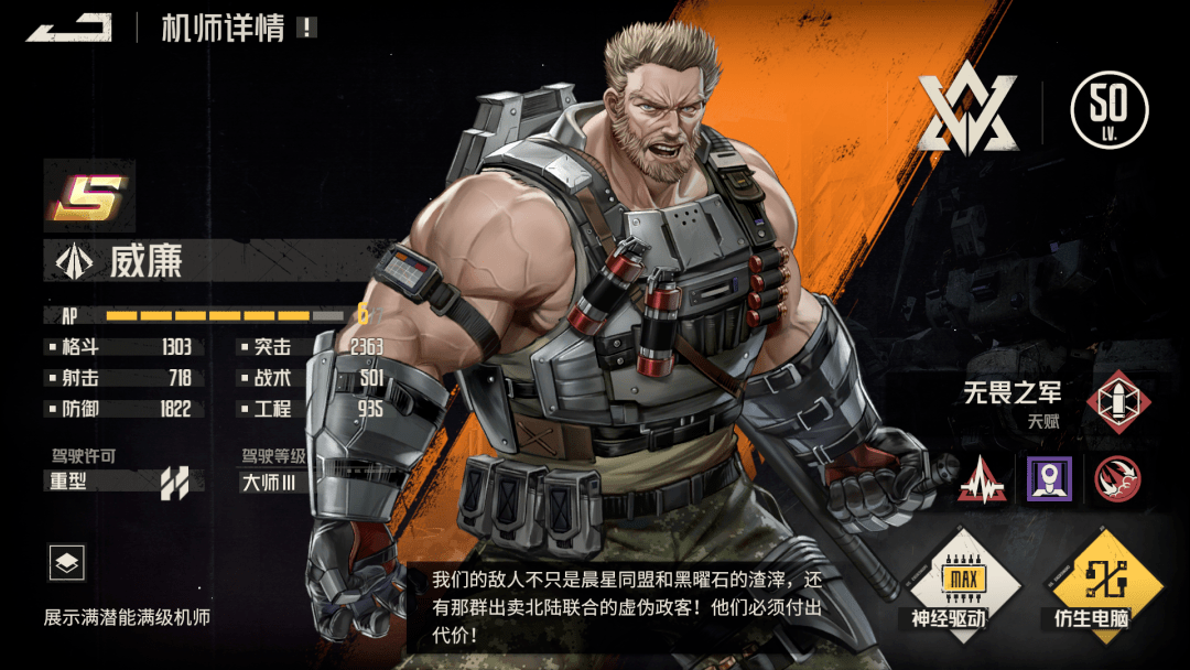 首先威廉作为目前游戏中仅有的一位S重甲突击,在机兵的品质解放方面算是能够享受到一丢丢红利,因为目前大部分的重甲都是守护者,而当前版本守护者的意义又不高,所以在S重甲角色中目前还算能拿的出手的机兵/机师就是白月的赫拉克勒斯以及威廉的金刚,因此在重型机兵的品质解放方面,大家的纠结程度可能就要降低不少了,至少对比轻甲/中甲目前的超级内卷态势,重甲算是好上太多了。