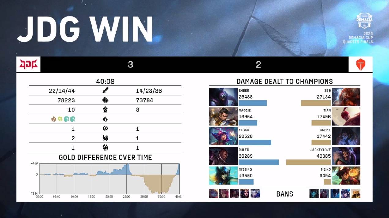 LOL德玛西亚杯在昨天进行了两场BO5的对决,最终RA是爆冷击败LNG晋级四强,而在随后进行的焦点之战TES与JDG的对决中,JDG是鏖战五局最终取胜晋级成功。