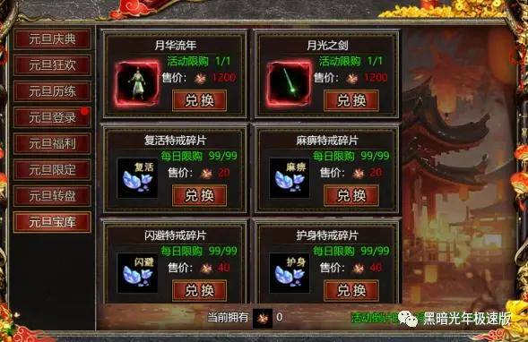 使用元旦烟花兑换各种道具和材料。