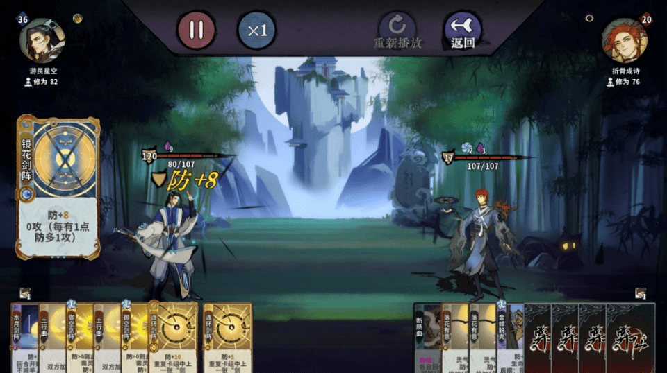关键在于开局的水灵天赋和第一张牌,其他牌可以随意选择。前期以少量高质量的牌为主,快速通过关卡。随着游戏进度,增加高级牌,核心牌为1、3和9,其中第一张为天赋牌,后两张各需一张。潜遁牌有两张便展现出战斗力。