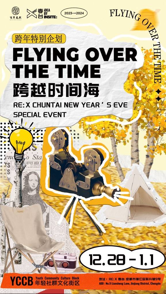 2023年12月28日-2024年1月1日,在跨年之际,RE:X春台开启狂欢模式。围绕年轻社群文化街区,以「FLYING OVER THE TIME」为主题,跨越时间海,与成都潮流青年们共同奔赴新的一年。看电影、逛潮店、听live……RE:X春台值此元旦佳节期间,丰富暖心的缤纷活动,将节日仪式感直接拉满!