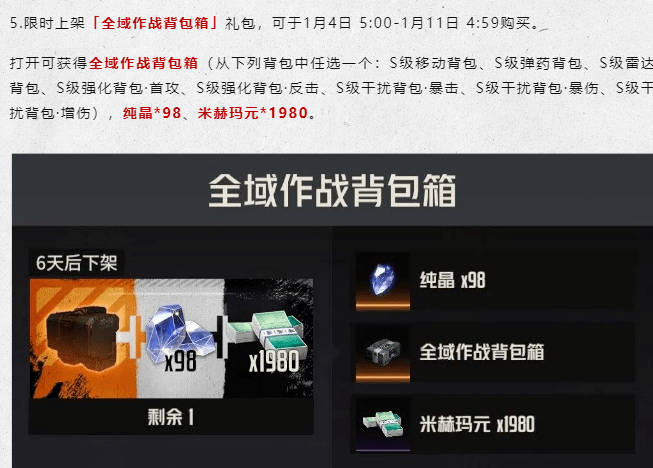 然后明天更新后又会上一个88元的背包自选,因为目前游戏中的背包并不算非常丰富,所以这一轮,也就是第四轮的背包自选和12月14日更新后上的背包自选是一模一样的,可以预见的是在未来的一定时间内,自选88元背包礼包会以3轮算作1个轮回的频率不断按周上线,这个大家就按照自己的需求来考虑了。