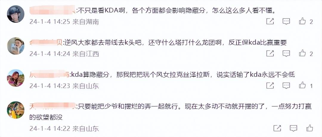 对此,很多网友都表示支持:“怕不是以后人均钻石的时候来了”,“大家都容易上分,等于没上分”,“只要能把少爷和摆烂的弄一起就行。现在太多动不动就开摆的了,一点努力打赢的欲望都没”,“kda算隐藏分,那我把把玩个风女拉克丝泽拉斯,说实话输了kda永远不会低”……