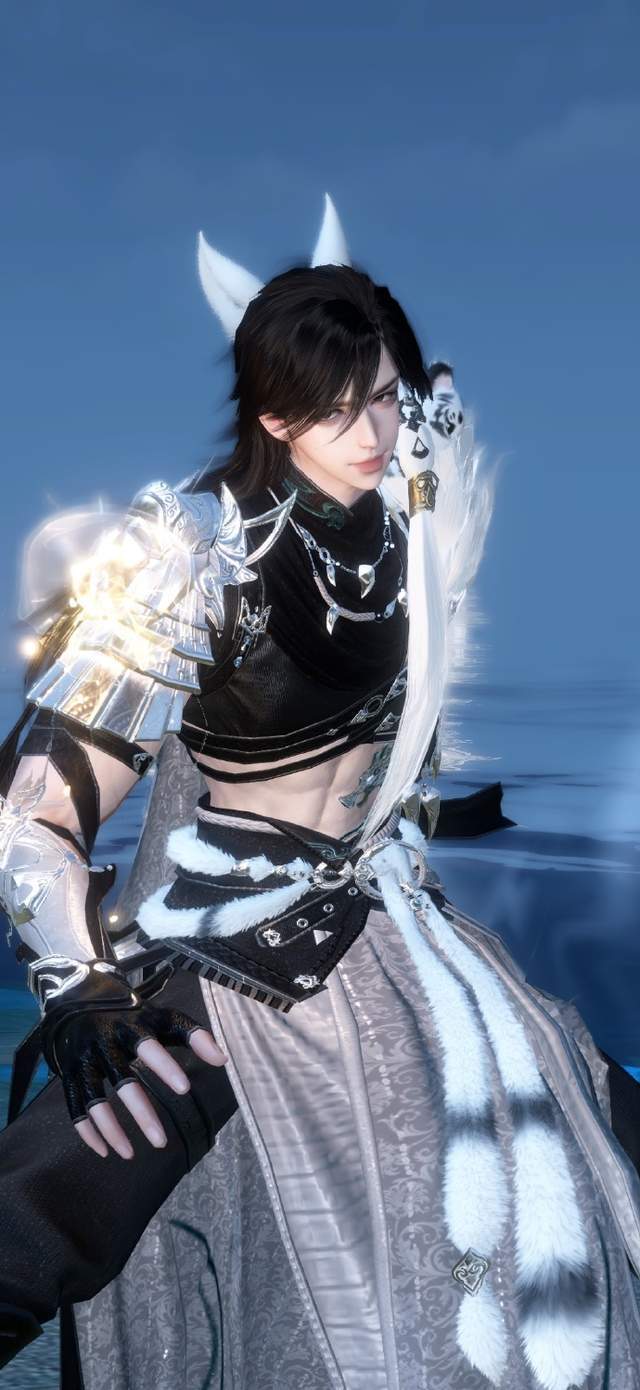 首先给大家看的就是@下极禹天 大大的神图!这张照片的质感一下子就把这套天狼北顾的质感体现出来了,主打一个野性与刚猛,就像是草原上优雅又强壮的狼王!很妙的是老师配了一双白色的耳朵,跟这套衣服上白色的皮毛有了呼应,也更能凸显出“狼”元素。对了,女生款的天狼北顾是有专门的狼耳造型的,大家甚至不需要自己配配饰!