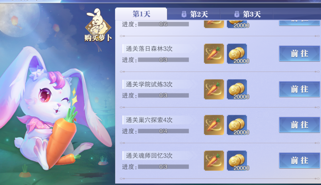 在每日任务方面,每天可以至多获得18根萝卜,3天就是54根,针对大部分普通玩家而言获取其中的12根应该没太大问题,所以3天就是36根。