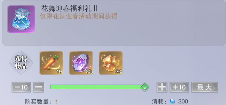 同时萝卜也可以在商城中进行购买,这里特别提示因为这个活动是可以靠着整点蹲坑打小怪来获取萝卜的,所以维一并不建议普通玩家购买除12888金魂币外的任何RMB以及钻石礼包,比如下面这个300钻石获取10根萝卜的礼包,按照上次活动的逻辑来讲,基本上蹲坑两个整点就可以稳定拿到超过10根萝卜了,因此这种性价比大家置换思考一下即可,不过不想要浪费时间的朋友还是可以考虑这些礼包的。