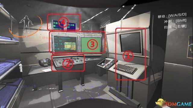 开始游戏后首先进入飞船内部,下图是飞船内部的设施说明。
