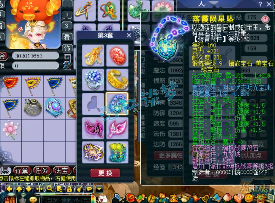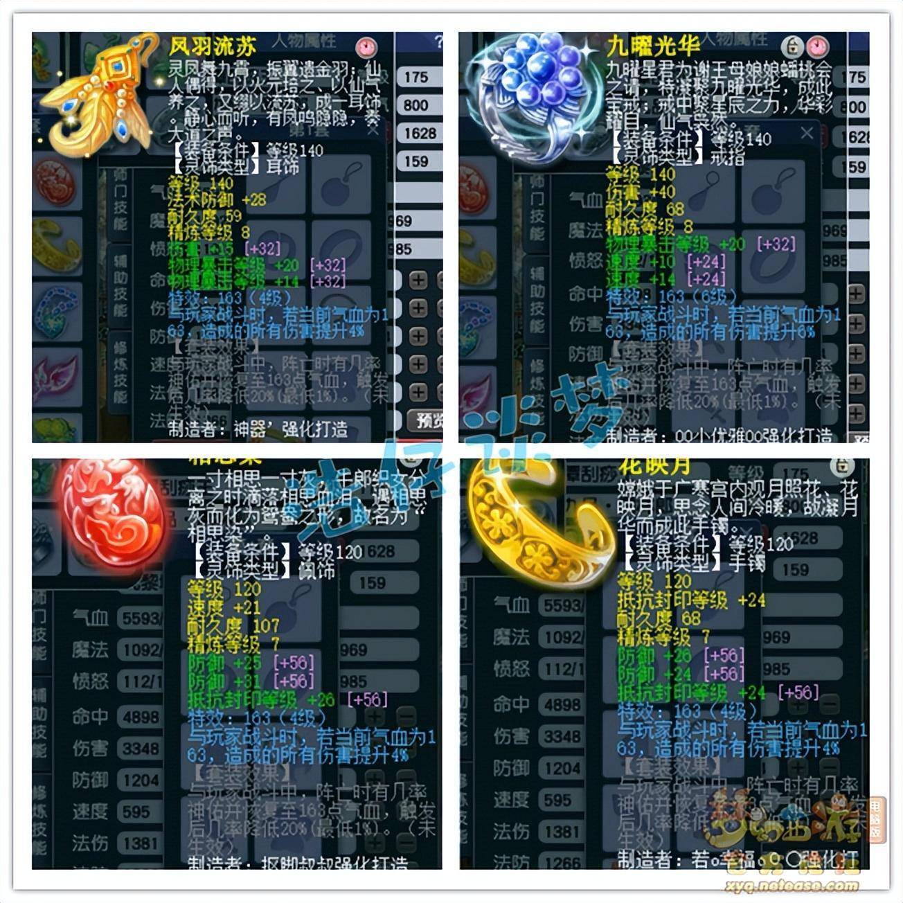 耳饰下排双物暴一伤害,戒指下排双速度一物暴,佩饰和手镯下排都是双防御一抗封,特效选择了163。