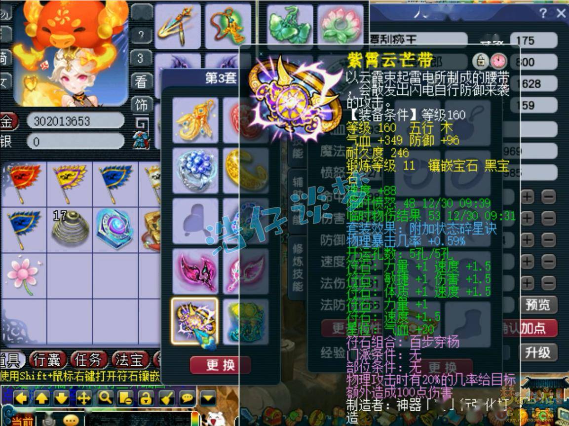 160级碎星诀套腰带,附加物理暴击几率+0.59%,打了11锻黑宝石!