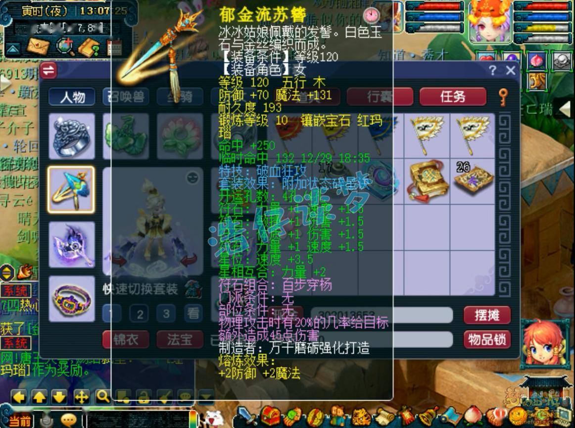 120级带破血狂攻的碎星诀套女头,打了10锻红玛瑙!