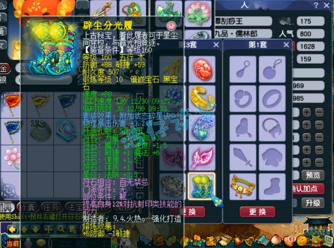 160级碎星诀套鞋子,附加物理暴击伤害+3.24%,打了10锻黑宝石!