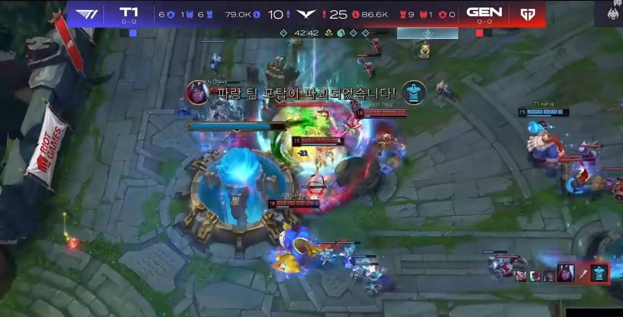 单人下龙坑之后,GEN战队出现配合失误,没有指挥立即停手,导致大龙血量掉到惩戒的斩杀线,Oner成功抢龙,帮助T1吹响反击号角,然而前面挖的坑太大还是输了。