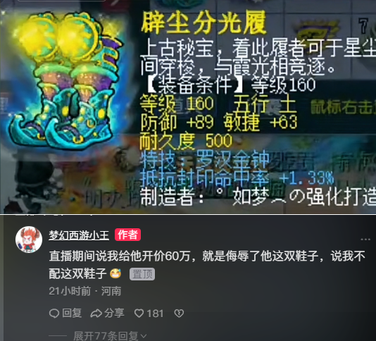 前几天,梧桐鉴定出了第一罗汉抗封鞋,随后这件神器被珍宝阁雷哥火速拿下。其实在这双鞋子在交易之前,小王曾报价60W给梧桐,不过让梧桐给拒绝了。可能是两人交流发生了不愉快,随后小王发视频表达自己的不满!