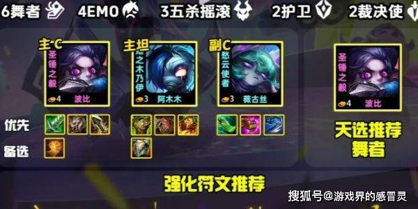 4、4-2拉8,大D找出基础阵容6舞者4EMO,随后慢D全员2星再拉9级。约里克没来找其他舞者代替!天选舞者波比最优,如是天选EMO就下掉安妮。
