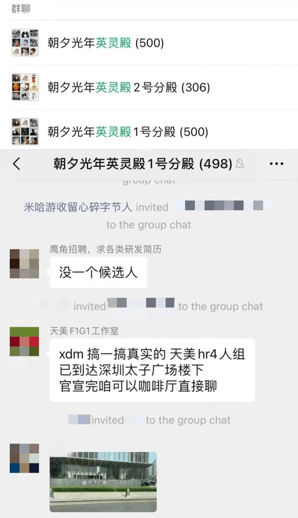 据报道,友商HR们纷纷在现场或网络上扫码加入字节游戏离职微信群,群名被先后命名为“朝夕光年英灵殿”1号分殿到6号分殿,其中1号分殿的微信群已接近500人上限。
