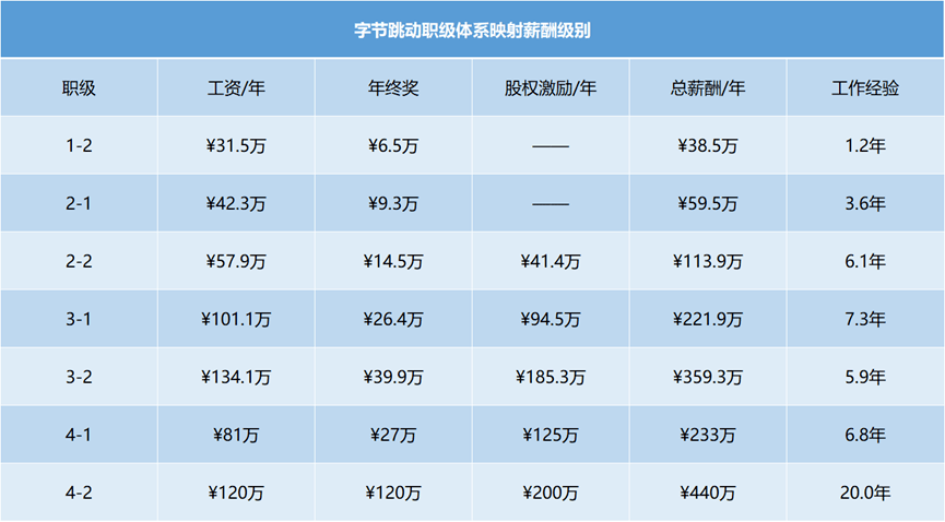 图:网络流传的字节跳动职级体系映射的薪酬级别