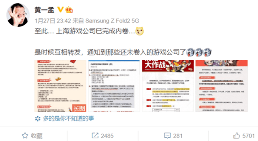 图:心动网络CEO黄一孟表示上海游戏公司已完成内卷