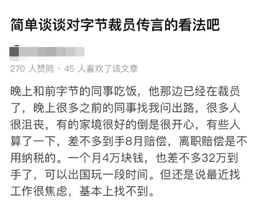 更有游戏公司HR认为,当前这一波字节跳动裁员潮,很多人离职后除非降薪一半,不然连面试机会都没有。