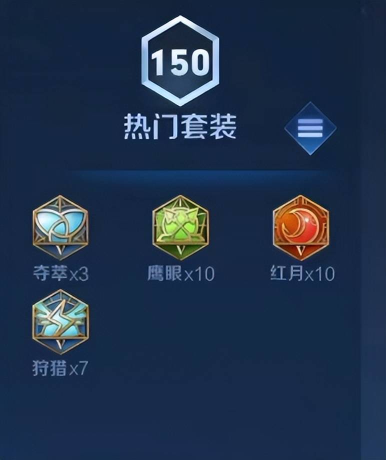 蓝色铭文:3x夺萃7x狩猎;绿色铭文:10x鹰眼;红色铭文:红月x10