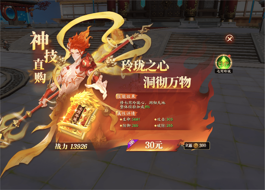 前期升级必备三大件:直升礼包、神技礼包、神龙卡(三大件总经验加成高达61.3%,相比普通玩家增长一半不止! )