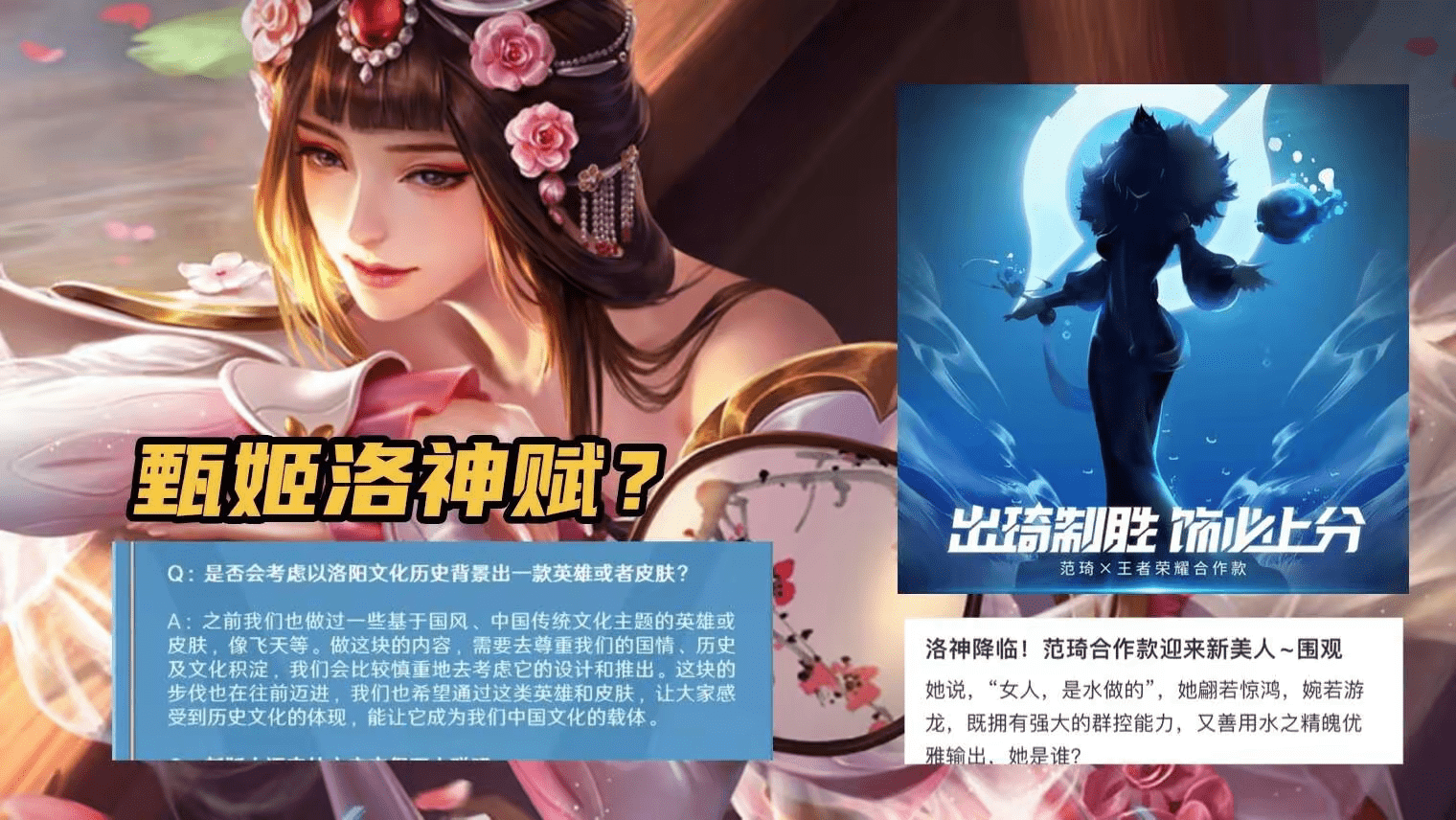 还有大家还记不记得之前官方有说过有可能推出以历史为背景的英雄或者皮肤,又刚好有博主爆料了甄姬可能会有洛神联动的皮肤,也正常,甄姬和洛神还是非常契合的,这款皮肤如果推出,怎么说也得传说起步。