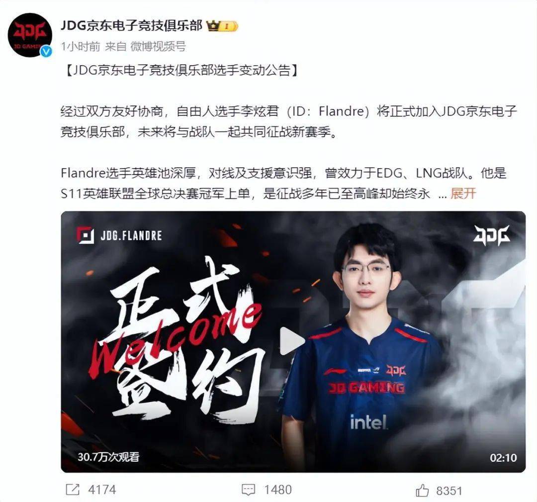 据官方消息,JDG战队正式宣布上路选手Flandre加盟,为2024年阵容添砖加瓦。Flandre作为一位经验丰富的上单选手,曾在多个赛季中展现出色表现,更是在S11全球总决赛上拿下冠军,他的加盟无疑为JDG注入了更多实力与经验。