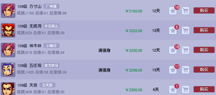 就目前的市场环境来说,神威组角色满三修、宝宝攻法17修的价格大约在2200元左右,即便是放到紫禁城、2008等烟花区,其价格也在3500元以内。换句话说,购买5个满修的角色比买一个化圣号的成本还低,对于想要入门五开的小伙伴来说,综合成本是比较低的。