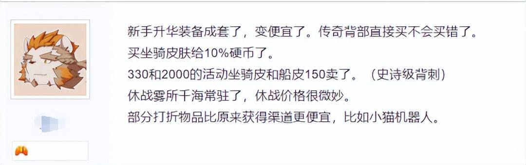 —新手升华装备成套了,变便宜了。传奇背部直接买不会买错了。