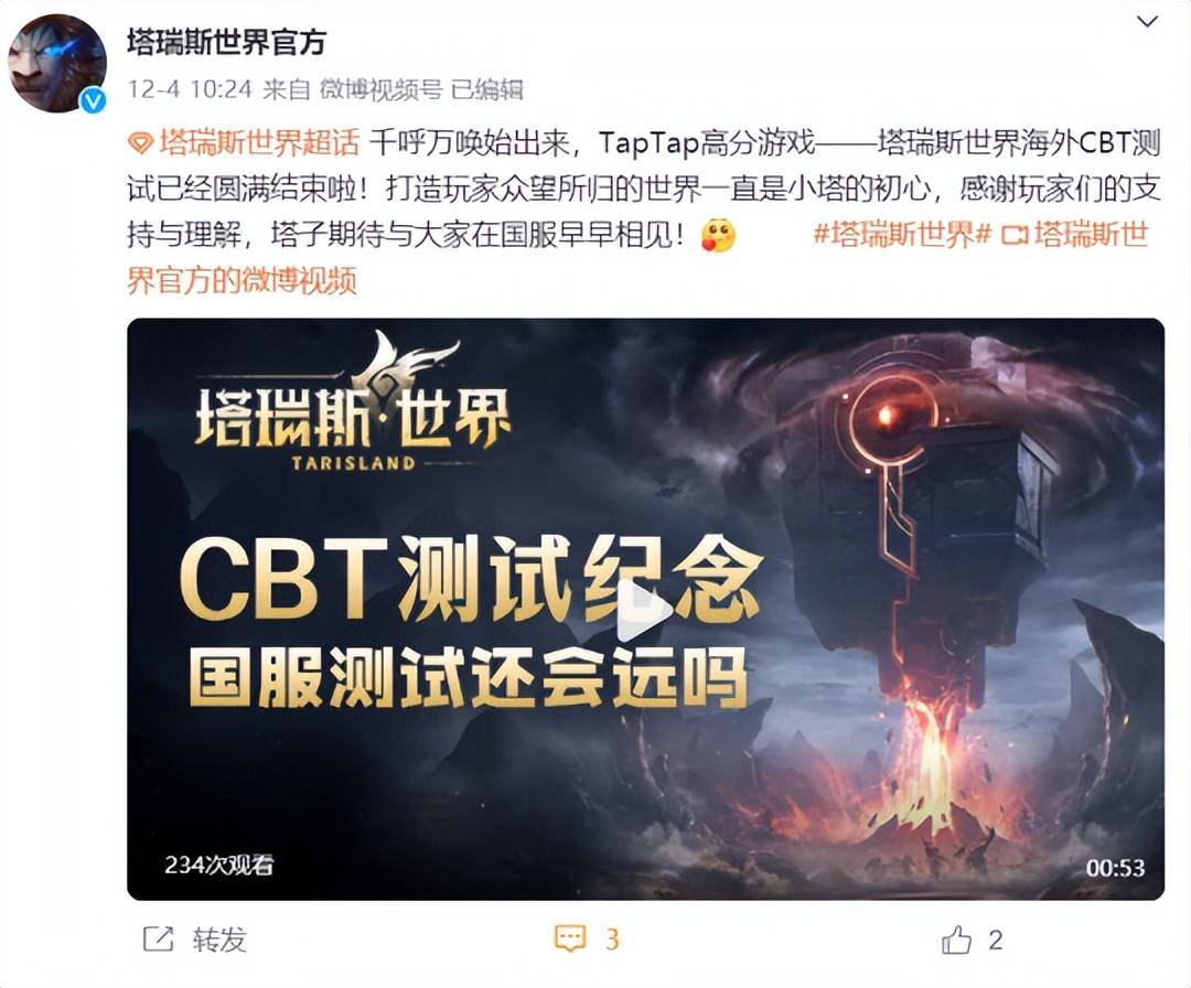 12月4日,鹅厂版魔兽《塔瑞斯世界》刚结束了海外二测,就在官博上发布了“国服测试还会远吗”的宣传标语,疑似会在近期放出具体的测试时间与流程。