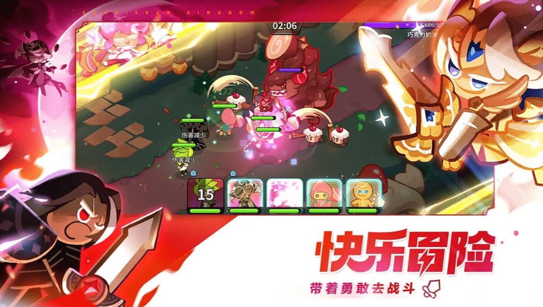 《冲呀!饼干人:王国》是一款结合模拟经营玩法元素的卡牌战斗手游,主要讲述在传说中的面包大陆上,勇敢的饼干们逃出魔女的烤箱,逐渐聚集伙伴,携手创建富饶又美丽的饼干王国的故事。