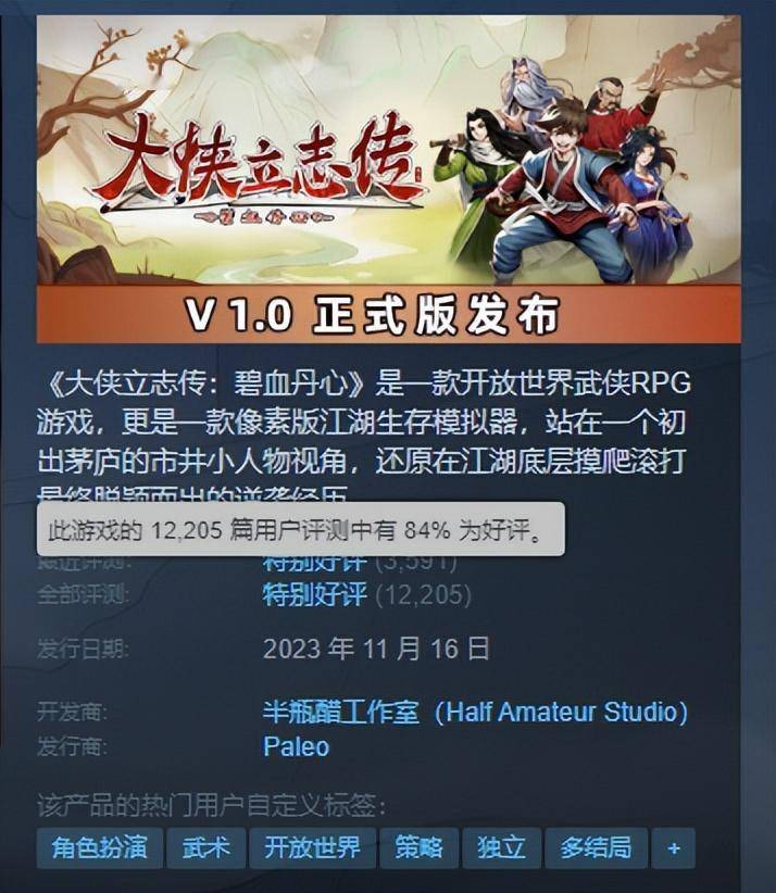 不过始终有一批心怀梦想的开发者,在武侠游戏的道路上披荆斩棘,近期一款号称《金庸群侠传》的精神续作的游戏,在Steam上大火。