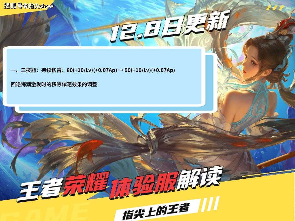 13技能的持续伤害增加了10点,另外回退了13或者31触发海潮的减速效果,之前把减速拿走了,相当于这次又给换了回来。
