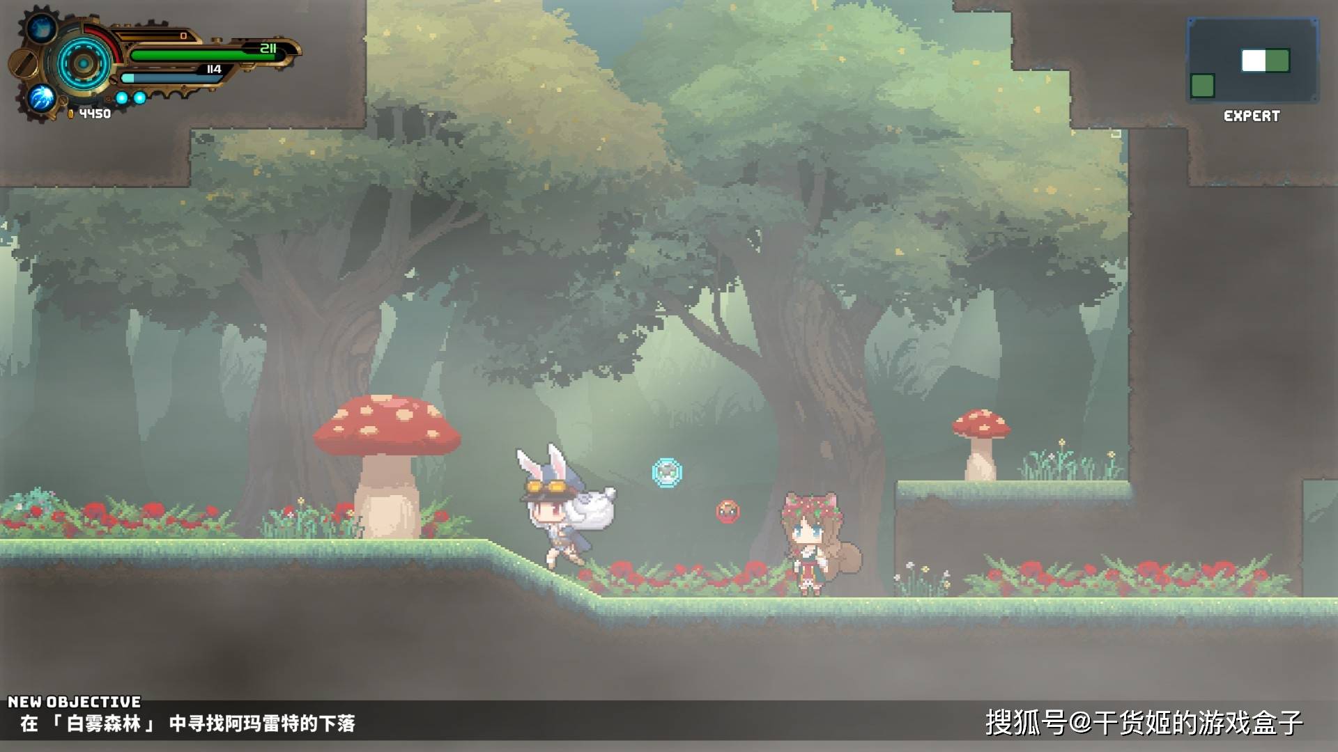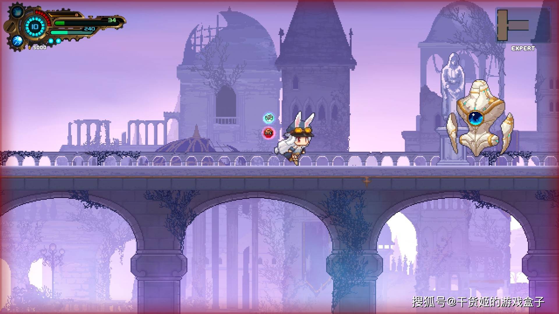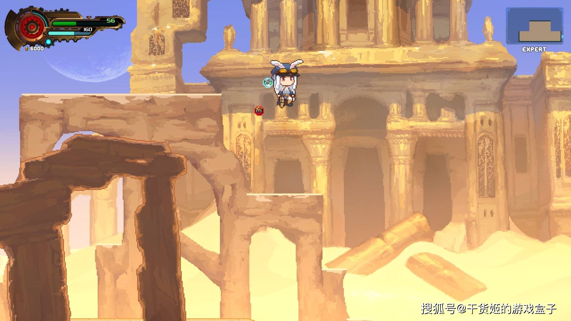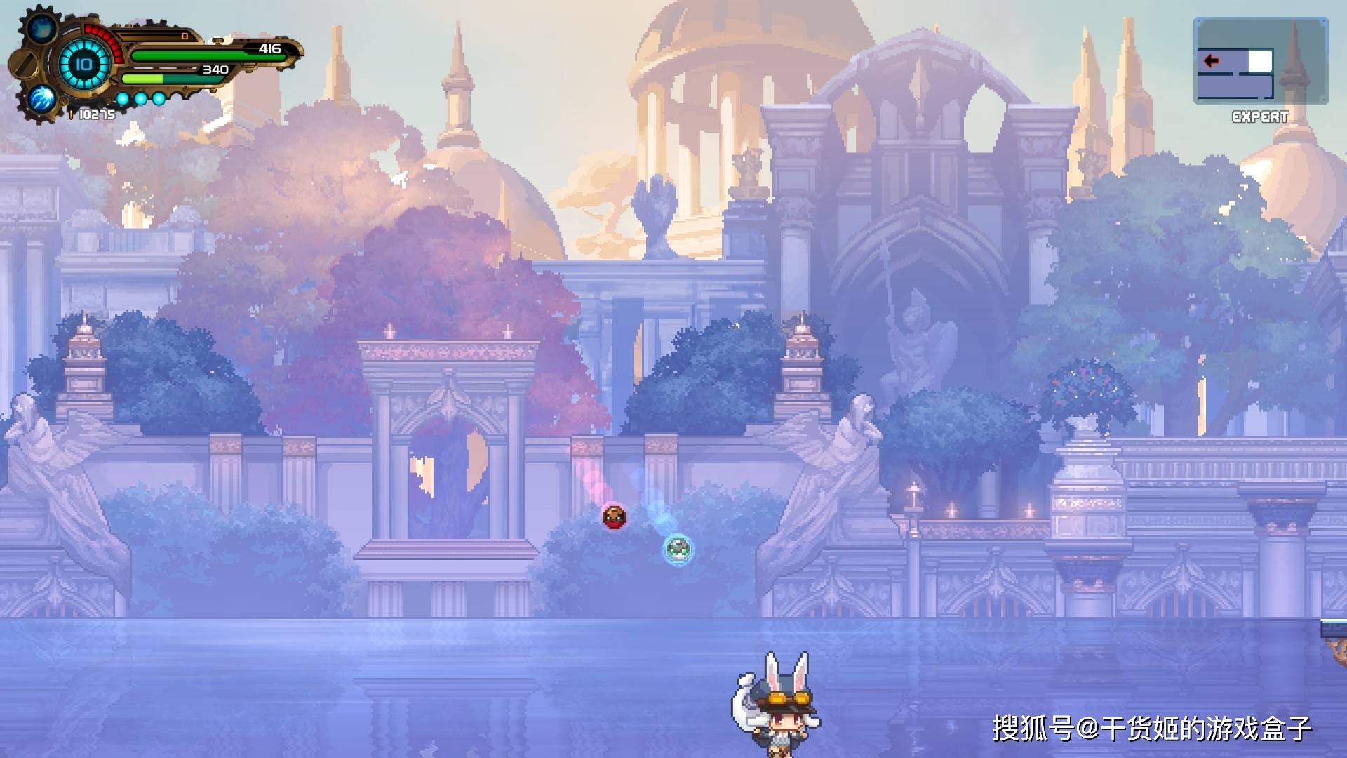 常玩类银河恶魔城平台游的行家都知道,小成本的此类游戏地图很喜欢用方格式的地图,简单明了地展示内容,《Rabi-Ribi》就是其中的佼佼者,用简单的框架与表现融会了在平台游戏中对stg弹幕动作的追求,还有充满宅气的对兔子二次元的执念,游戏内容却十分硬派,像方形地图的直角,很有难度的刺激。《TEVI》延续着这样的情愫,将方形的四角磨圆,以更精美的画面,将丰富的游戏世界展出。