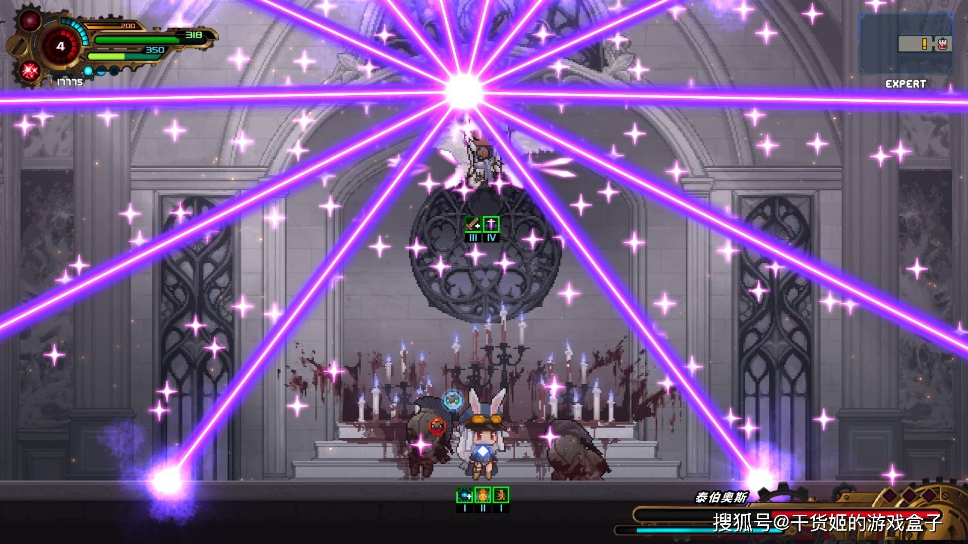 当然,如果认为见不到完整弹幕相当于少玩了块钱,其实通关最高难度对于接触过一定平台游戏的玩家绝非难事:boss战弹幕循序渐进强度渐增供玩家适应,直至最高潮,弹幕类型大多为限制活动场地的规则弹幕+需要玩家迅速反应的混乱弹幕,要求并不极端,何况还有如“核心展开”这种直接创造安全空间避开锋芒的手段。通过累积消耗品、回复手段安排容错节奏,用资源管理普普通通拿下胜利,是每个玩家皆能效仿的经济·空手道。不过,也许正因这种趋同让本作的战斗体验没有太显著的记忆点,单从boss战场地的单一就能看出。