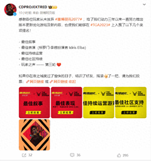 原标题:《2077》获TGA奖项 官方发文:时间是最好的老师