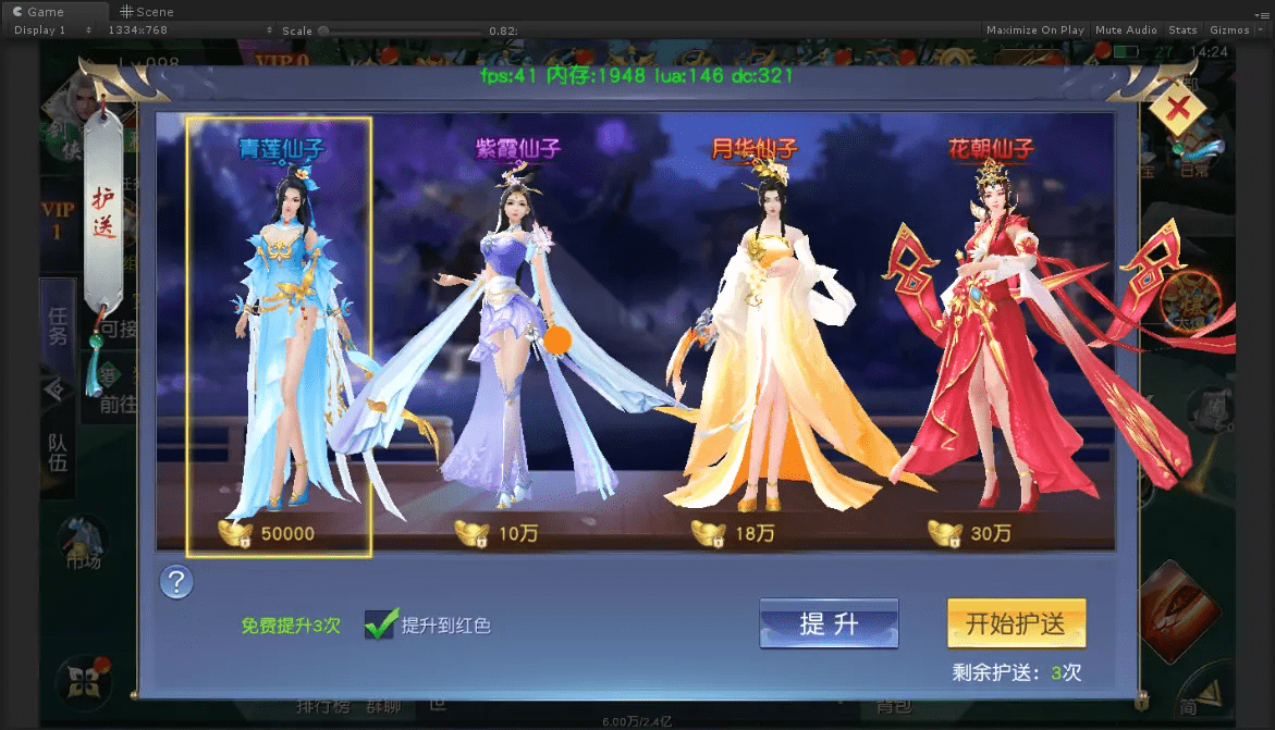 消耗资源: 提升仙女品质需要消耗美人令,若美人令不足则需要花费绑定元宝,不足的话可能会消耗元宝。