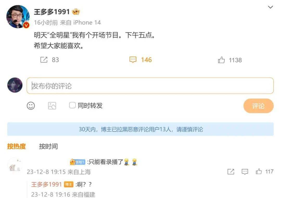 大量观众开始嘲讽LPL赛区,但事实真相真是如此吗,后续LPL官方解说王多多的一个微博引起了大家的关注,王多多在微博上面表示,全明星开始的时候有他的一个节目,希望大家能够喜欢。