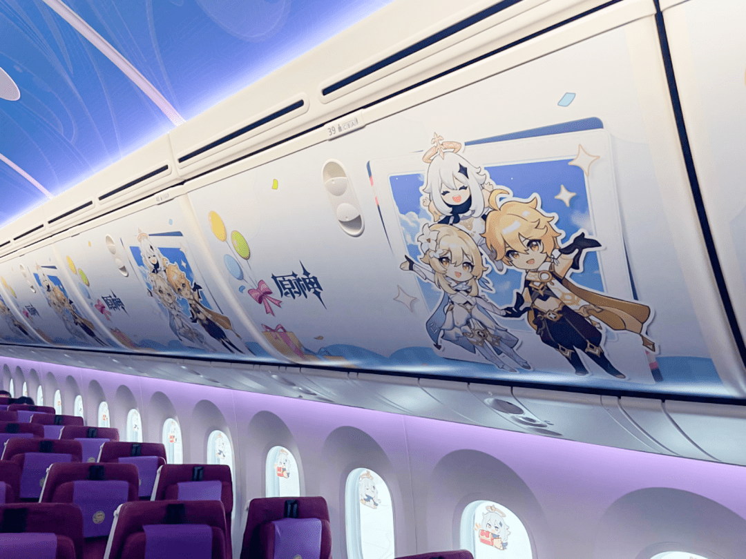 也是11月,米哈游宣布和吉祥航空联合推出的《原神》主题涂装飞机在上海浦东机场升空首飞。