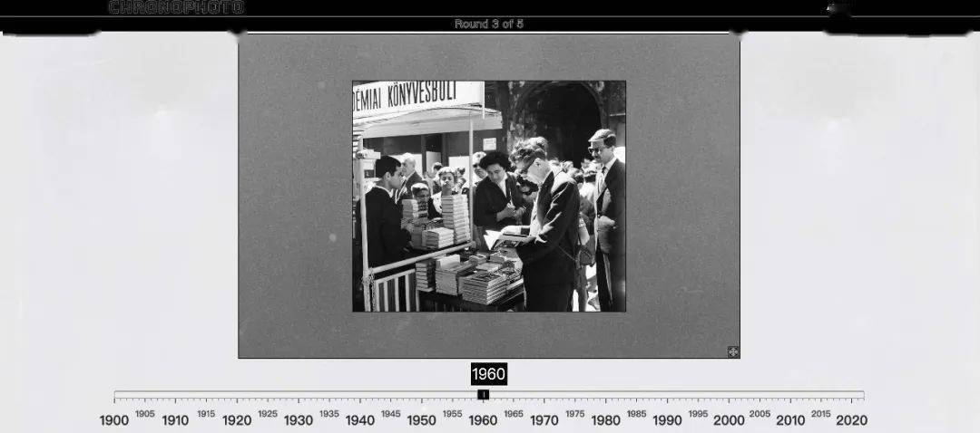 Chronophoto 是一款极其简单但令人上瘾的沉浸式猜谜游戏,玩家会看到一系列随机图像,在游戏中必须猜测照片的拍摄年份。这个游戏通过检查每张图像的细节以确定照片拍摄的特定年份或年代范围,来测试用户的摄影风格历史知识。