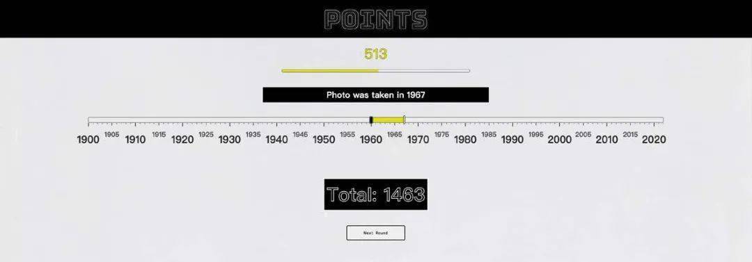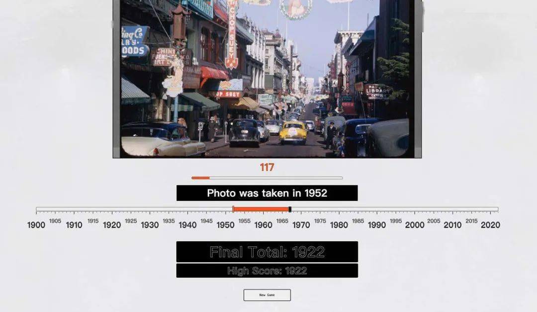 游戏开始后打开图像,玩家将滑块移动到他们认为拍摄照片的年份,然后单击“提