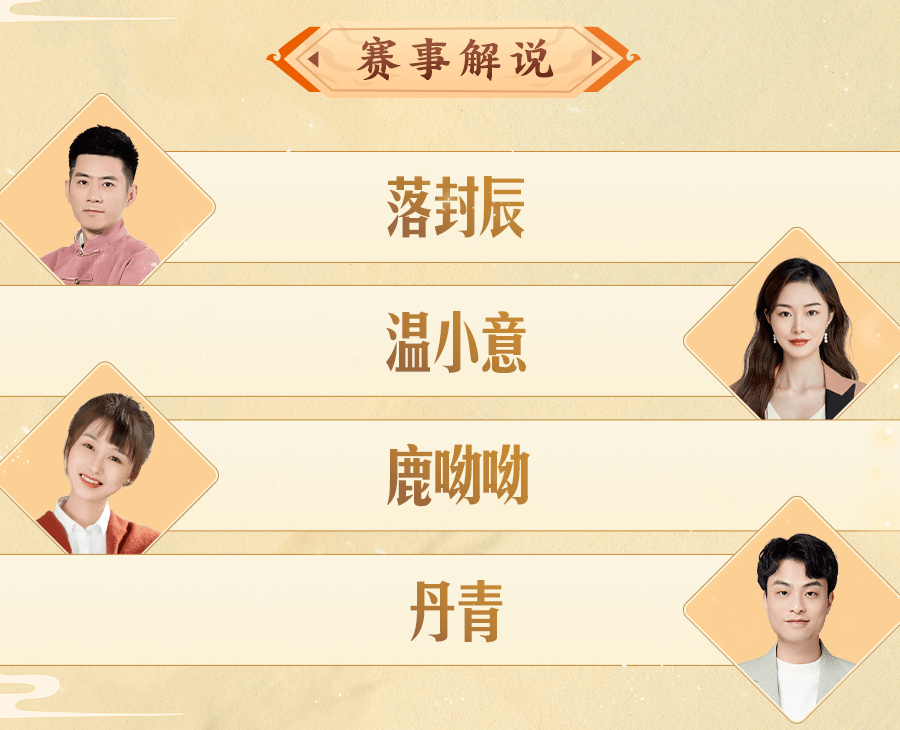 大话赛事金牌解说:落封辰、温小意、鹿呦呦、丹青也将前来坐镇群雄逐鹿争霸赛年度总决赛,为各位少侠献上最精彩的战况和战术解析!