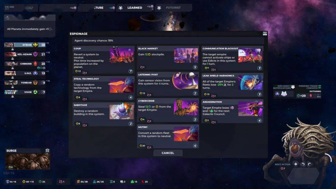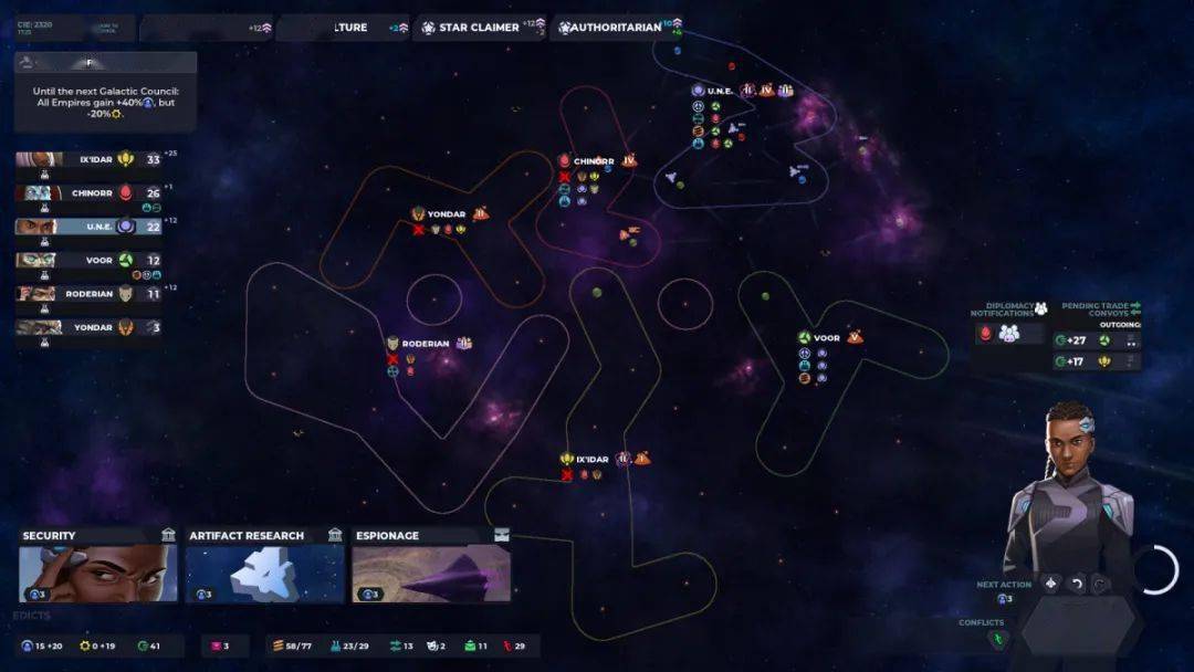 《Stellaris Nexus》是一款同步回合制多人 4X 游戏,带来全方位扣人心弦的策略性 4X 体验。选择一个独特的派别和领袖,挑战多达 5 名其他玩家,在约 1 小时的时间里,通过谋划和战斗来统治银河系。