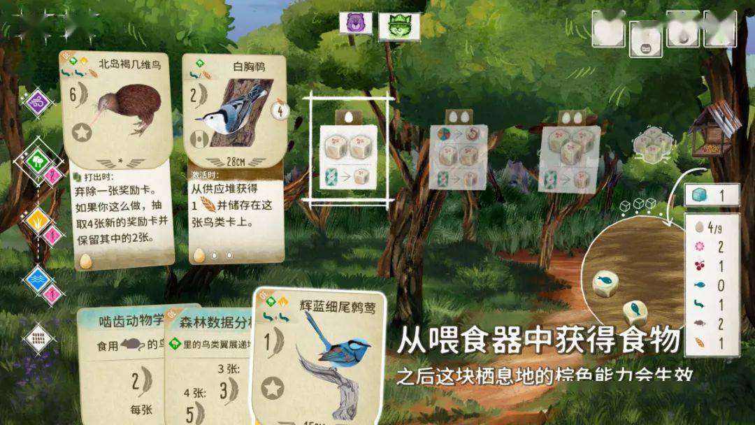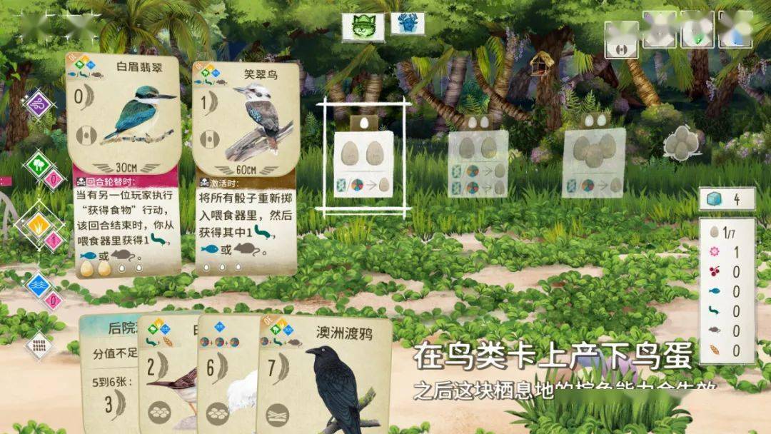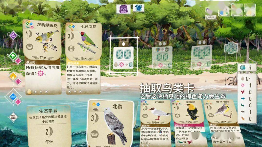 在《展翅翱翔:大洋洲篇》中,你将邂逅来自大洋洲地区的各种鸟类。阅读鸟类卡上的趣味科普来增进对它们的了解,聆听它们的真实啼鸣。许多大洋洲鸟类都拥有新的技能,包括在游戏最后结算前激活的黄色能力“游戏结束”。