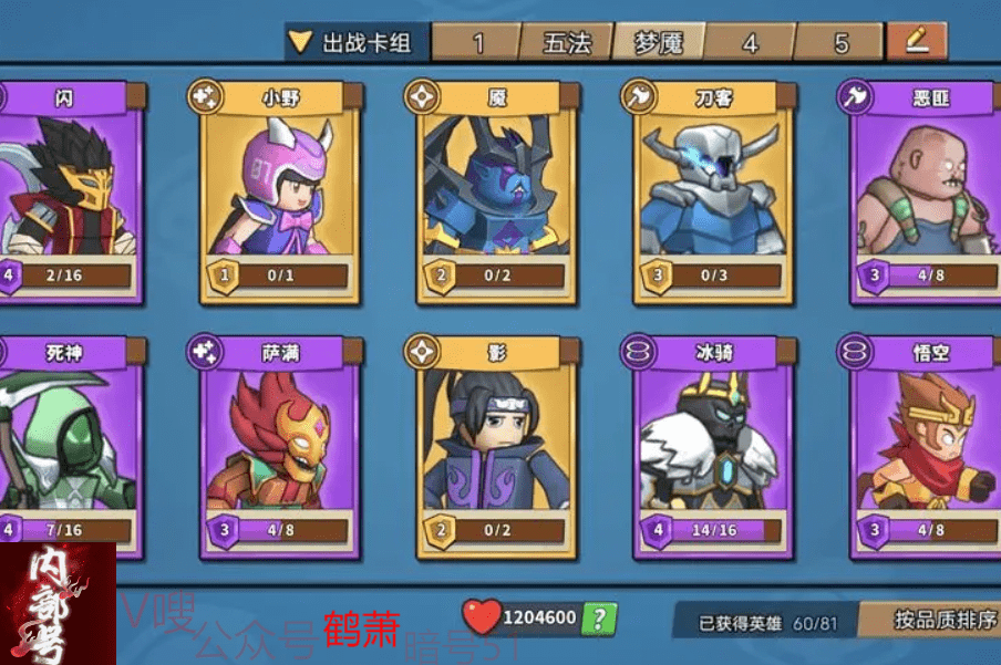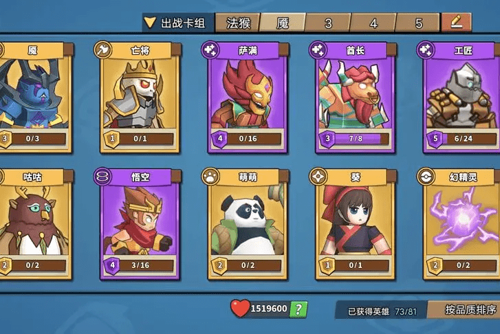 1. 战将 + 女王 + 小丑 + 光精灵 + 小鹿 + 冰法 + 地精 + 悟空 + 松鼠 + 雷精灵