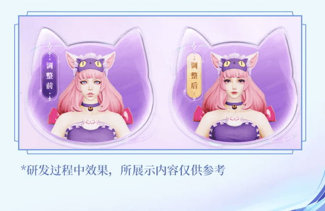猫狗日记上线较早,大乔的建模略显粗糙,特别是面部,有点纸片人的视觉效果。面部优化有,大乔的面庞显得红润有光,嘴唇涂上了口红,眼睛变得更大,且不再是白色的瞳孔,整体更符合国人的审美。官方优化大乔的皮肤其实也存在部分私心,大乔的星元皮肤将上线,策划也希望星元皮肤卖的更好,所有优化了大乔的皮肤。于玩家和官方而言,这属于双赢。