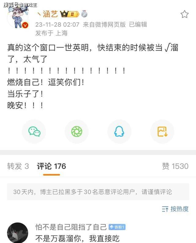 短短几个小时之后,涵艺就公开发文,真的,这个窗口一世英名快结束的时候,被当狗溜了,太气了,燃烧自己逗乐,你们当乐子吧。估计可能是这段时间风头太盛了,以至于业内人士看他有些不爽,所以才爆出了假料,打压他一下。转会期都快结束了,一下子从业内的顶级爆料人变成了小丑,不得不说,他真的有点沉不住气了,W bg小虎和knight这样的阵容怎么也要确定一下,再公布出来吧。