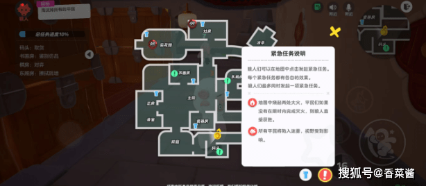 3、平民需要在各个区域完成指定任务。当所有任务完成时,平民阵营会获得胜利。狼人则可触发紧急任务来干扰和限制平民。