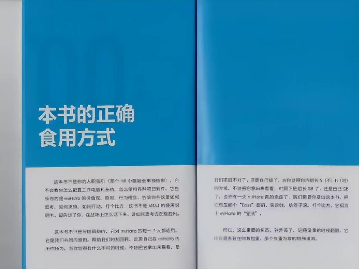 在米哈游员工手册的最后,还写着:如果看完这本书,你觉得这是热血沸腾,那么恭喜你,你来对了地方,让我们一起创造自己的未来吧。你将是延续和发扬光大我们文化与愿景的重要核心。如果你看完这本书。觉得这完全是扯淡。那么恭喜你,你应该尽快离职,这样才能避免你宝贵的时间与生命被浪费在你觉得不值得的地方。不然,miHoYo 也会请你离开。