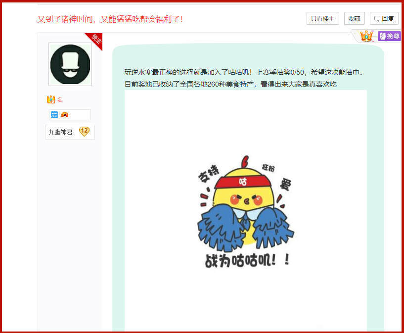 咕咕叽在每一次的活动中,发放给中奖帮众的各种奖品,也全都是由身处全国各地的玩家,自愿捐献提供给管理人员的。